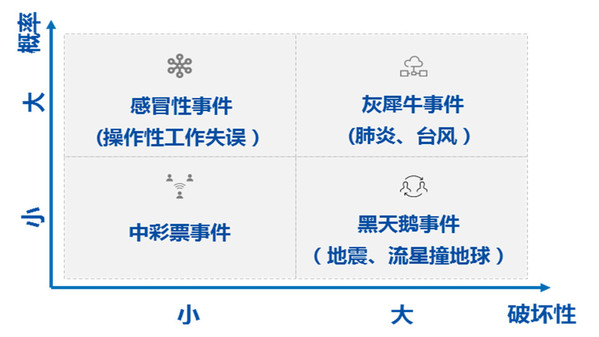 网络上很多专家学者给“新冠肺炎疫情”定性为“黑天鹅事件”。我认为ConV-2019是灰犀牛事件,看下面这个图就可以明白。