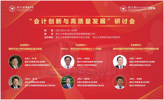 2021年1月15日,由浙江大学管理学院财务与会计学系、浙江大学财务与会计研究所主办的“会计创新与高质量发展”研讨会将在浙大紫金港校区举行。届时,重量级嘉宾将围绕“会计创新与高质量发展”的主题展开分享与讨论。欢迎大家参加!