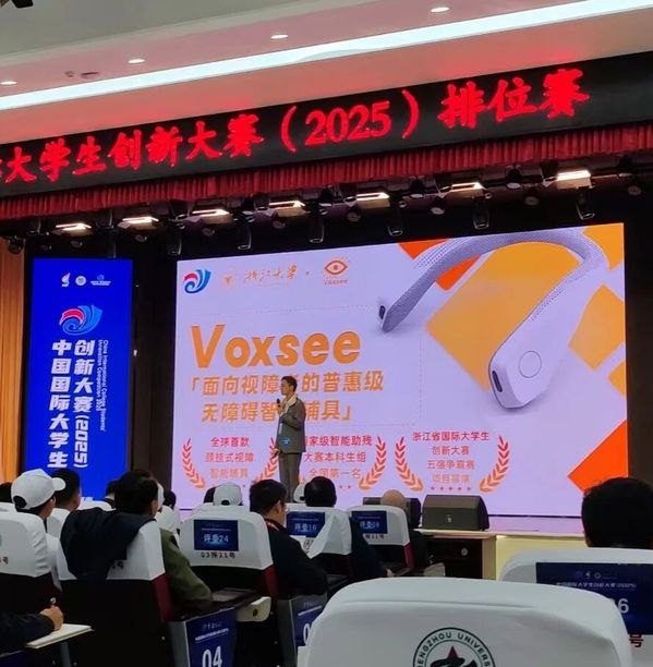 还真有!就在前不久刚刚落幕的中国国际大学生创新大赛(2025)上,由浙江大学管理学院2023级会计学专业本科生何依霖携手信息与电子工程学院2023级微电子科学与工程专业本科生陈奕好联合创立的Voxsee项目摘得大赛金奖。