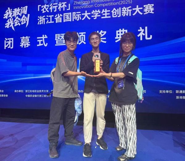 自那以后,备受鼓舞的何依霖与陈奕好带领团队报名了很多创赛,还参加了大大小小的路演。虽然一路走来经历不少质疑,但在团队的共同努力下,Voxsee项目最终摘得了2025“农行杯”浙江省国际大学生创新大赛金奖、中国国际大学生创新大赛(2025)金奖等各类创赛奖项。