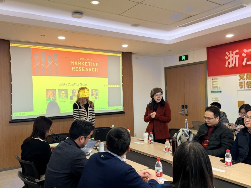 12月4日下午,浙江大学管理学院“与主编面对面”系列活动暨市场营销系学术讲座在紫金港校区顺利举行。本次活动特邀 Journal of Marketing Research(JMR)主编REBECCA W. HAMILTON教授,围绕JMR期刊的发展方向、投稿流程与学术政策展开深度分享,并与在场师生进行互动交流。本次讲座由市场营销学系周欣悦教授主持。