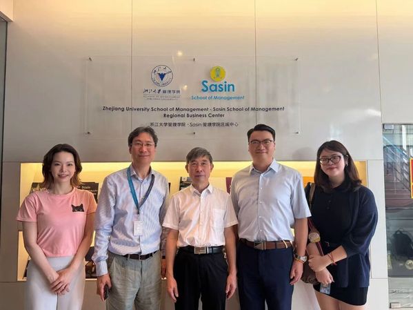 张宏建(中)、王小毅(右2)一行参观浙江大学管理学院-萨辛管理学院区域中心
