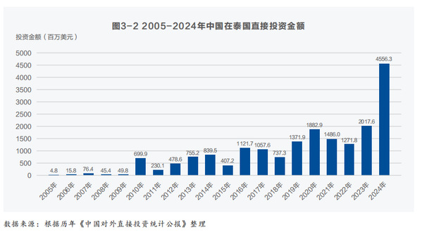 2005-2024年中国在泰国直接投资金额|图片来源:报告原文
