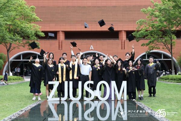 王文明与2021级智能财务班毕业生的合影,他两次获评“浙江大学优秀班主任”