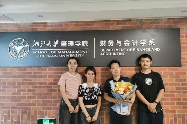 王文明与他所指导的22级MPAcc研究生的毕业合影,三位同学都获评“浙江大学优秀毕业研究生”