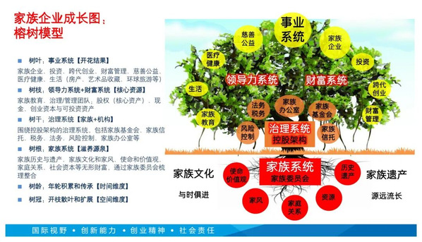 榕树的形象给了我们团队极大的启发,从而推出了“家族成长的榕树模型”。这个模型分为三部分:
