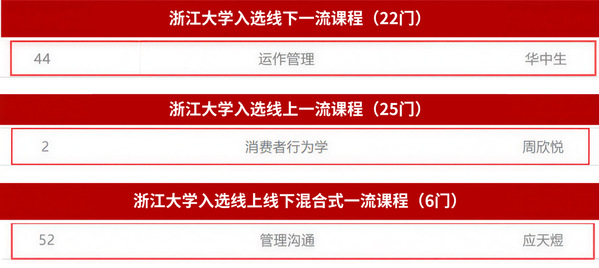 近日,教育部公布了第三批国家级一流本科课程认定结果,浙江大学管理学院《运作管理》《消费者行为学》《管理沟通》三门课程成功入选。