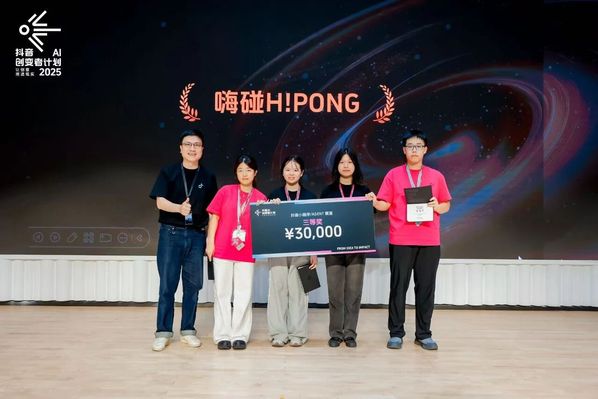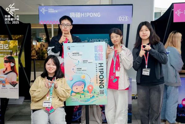 另一次是她作为项目负责人,与来自人工智能、能源工程、艺术与科技等学科的伙伴组队参加抖音黑客松比赛。在极短的时间内,他们从0到1做出了一个名为“嗨碰H!PONG”的社交小程序,巧妙地解决了多人聚会碰面地点决策、团建方案策划等社交痛点需求,并荣获第一届抖音AI创变者计划全国三等奖。